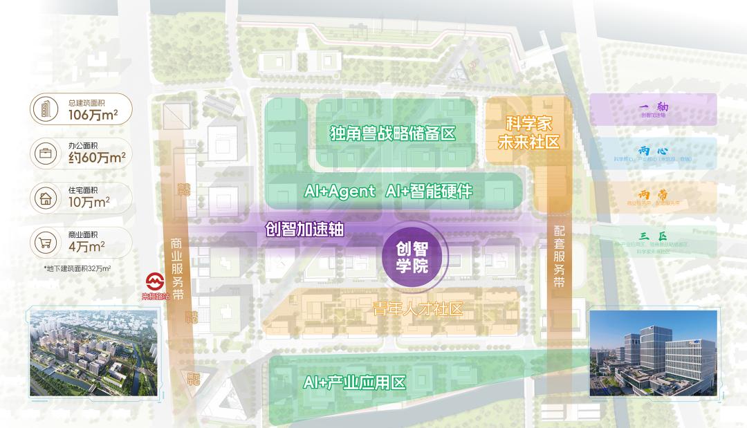 北杨人工智能创新小镇是由临港集团和徐汇区政府联手打造的产城融合标杆项目,总建筑面积约106万平方米。小镇以上海创智学院为核心,依托米哈游、奇瑞汽车等龙头企业,构建了“创智学院+大厂+资本+孵化+高校+中小企业”的完整生态体系。漕河泾M+作为小镇“两带”中商业服务带的重要环节,将辐射周边3公里范围,提供AI主题生活方式和契合科学家品质的轻邻感社交空间。