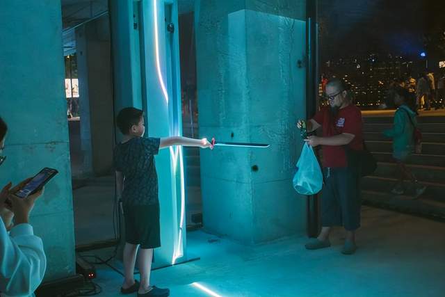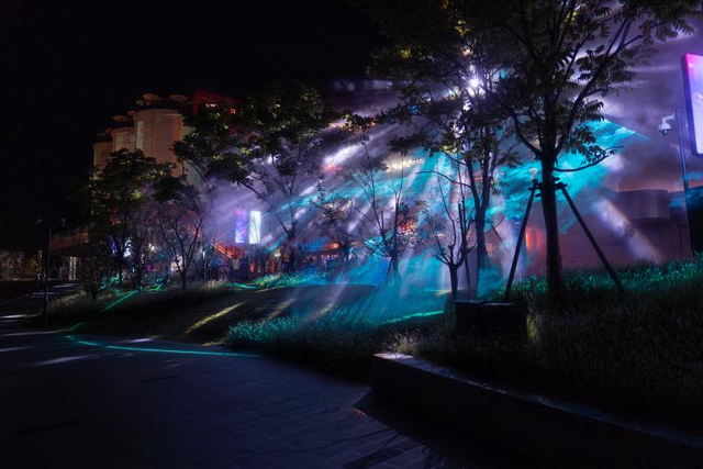 展演结束可别急着离开,重头戏才刚刚开始。千万别错过砼仓下方的互动激光帘!别光看,上手啊!砼仓下方的激光帘像小宠物一样等你摸。只要你一伸手,光就会变形、变色、变出“生命”来。