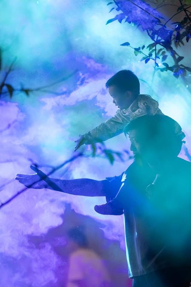 好了,赛博001号玩家!离开砼仓后,请打开徐汇分会场的光影地图,标记「雾森灯光秀《呼吸》」,瞬移到这里!
